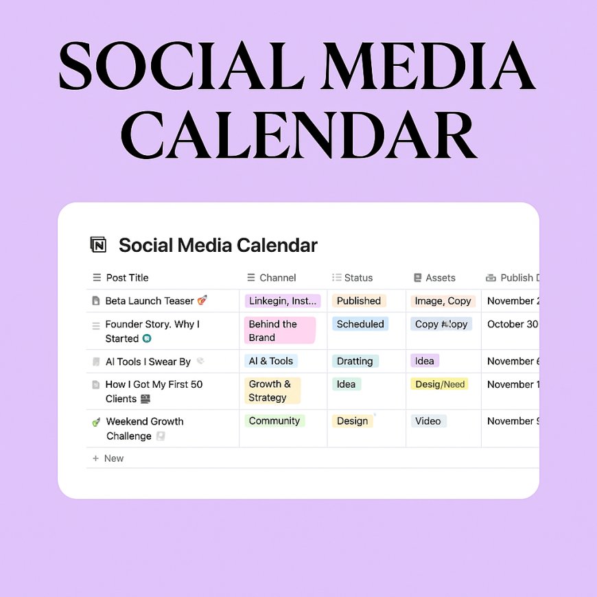 I’ve created a Notion Social Media Calendar Template that’s fully free for founders, creators, and consultants who want to simplify their workflow.